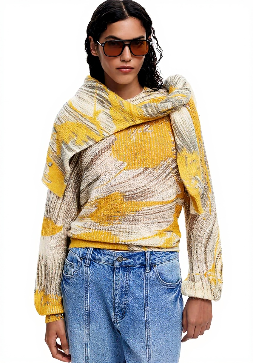 Disponibile nelle taglie XS, M, L, XL con colori Rosso e Giallo. Il modello 25WWJF31 presenta un fit regular che corrisponde alle misure standard senza aderire eccessivamente. Il collo è di tipo rotondo, le maniche sono lunghe e il tessuto presenta una texture visibile e percepibile al tatto. Prodotto da Desigual, disponibile su Amazon.it a partire dall’8 dicembre 2025.
