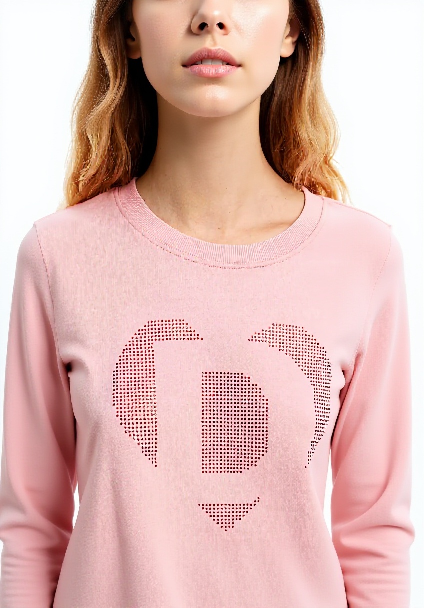 Il maglione è realizzato in felpa maglia, che garantisce comfort e resistenza, con dettagli lucenti per un tocco elegante.