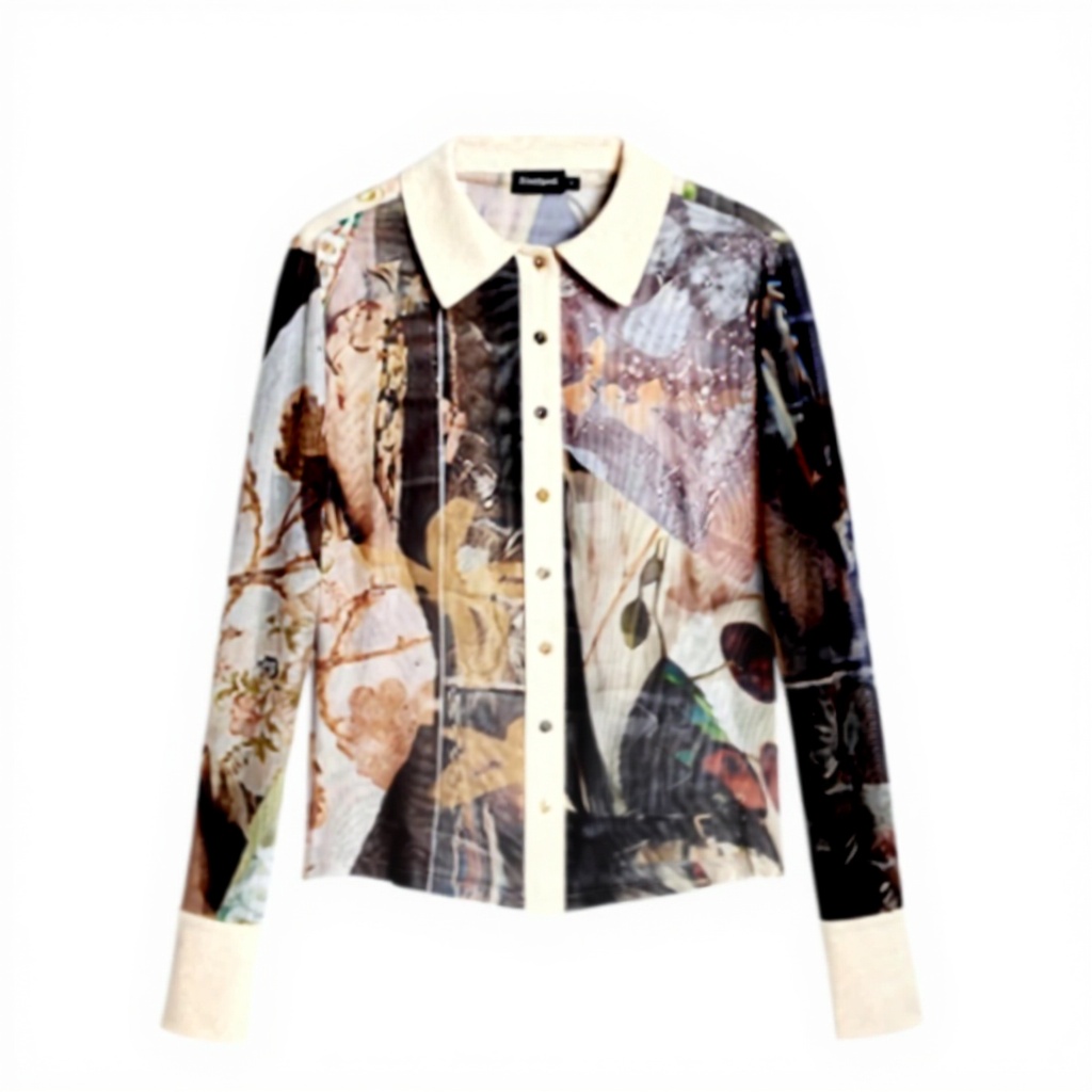 È ideale per donne che preferiscono un abbigliamento casual ma raffinato, con stampe artistiche e dettagli come il colletto a camicia.