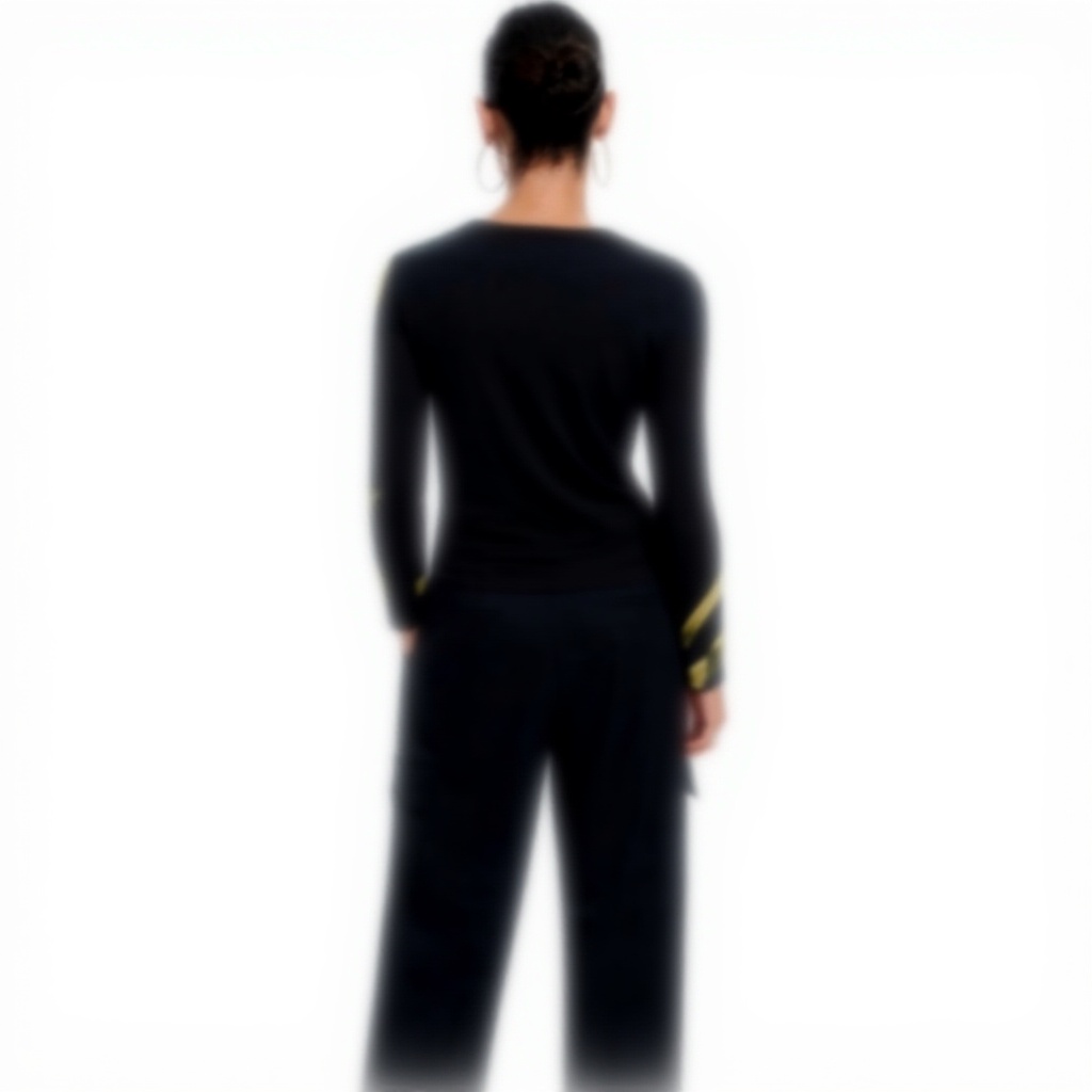 Questa T-shirt Desigual si distingue per la stampa di un’orchidea di grandi dimensioni su una base tinta unita, realizzata in poliammide riciclata per un approccio sostenibile. Il design include un collo rotondo e maniche lunghe, offrendo un equilibrio tra eleganza e comfort quotidiano.